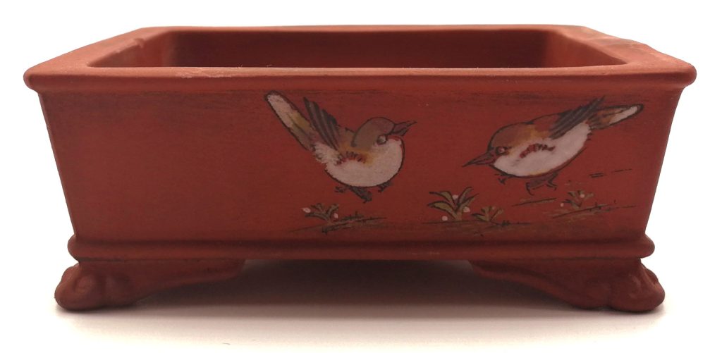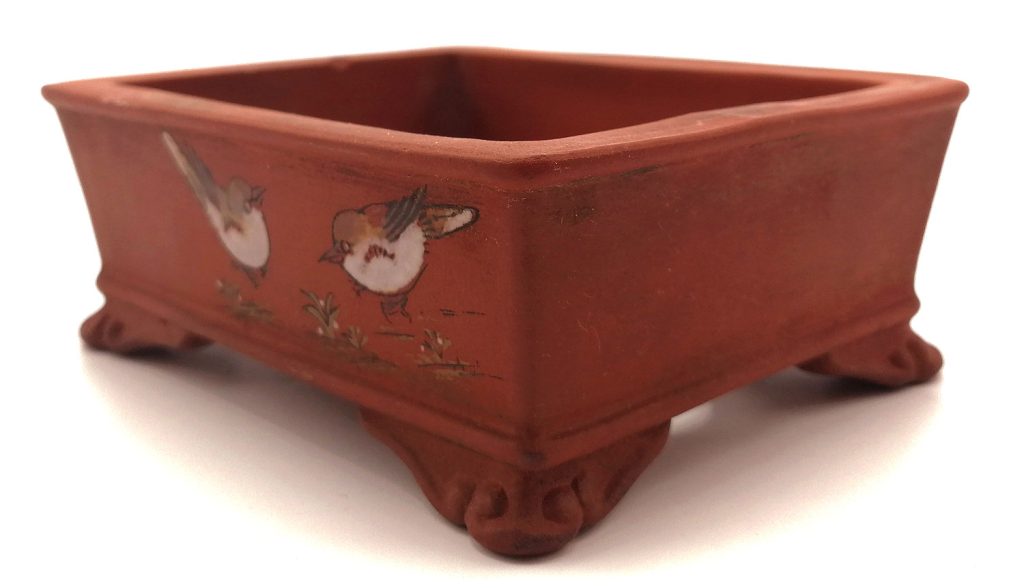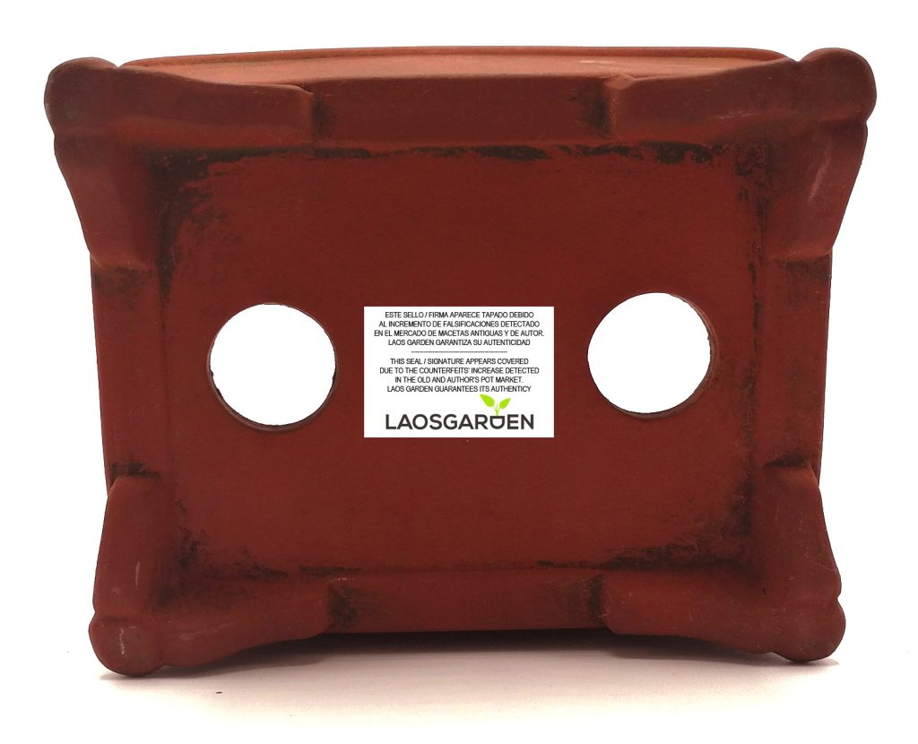 Las macetas destinadas al cultivo de bonsái deben incorporar patas elevadas, que permitan una adecuada aireación del sistema radicular, así como orificios de drenaje amplios y bien diseñados, por los que el agua pueda evacuarse correctamente. Como ejemplo, mostramos una maceta japonesa para bonsái de la casa Bunzan, de Seto, perteneciente a la colección Laos Garden, que reúne estas características esenciales.