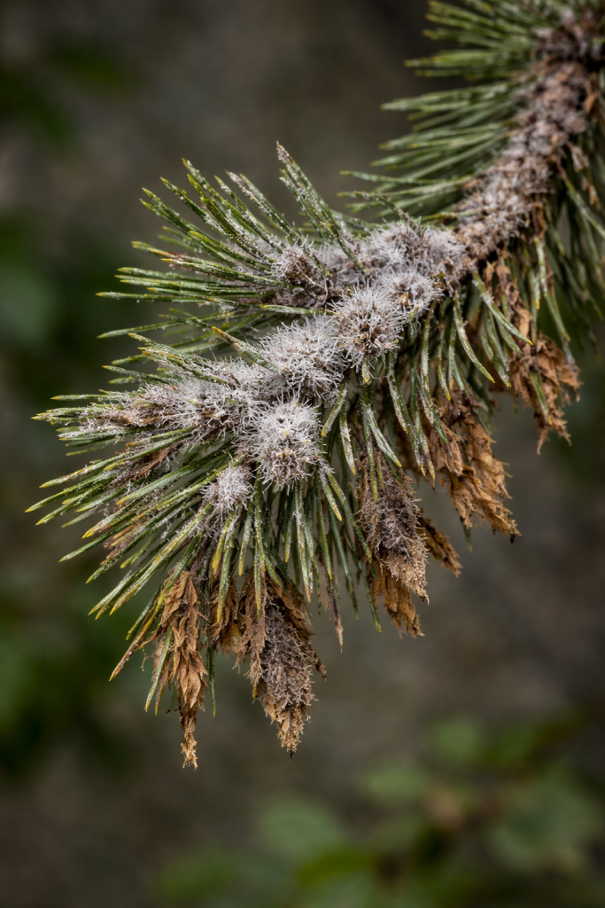Ramas de pinos con la enfermedad muy avanzada.