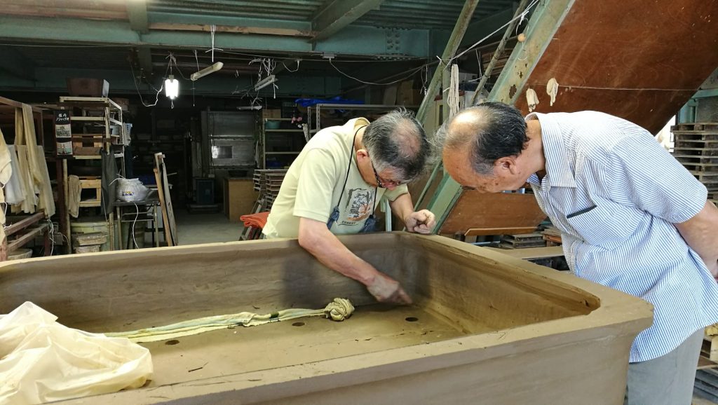 Cuando llegó el momento de ensamblar las partes, colocaron en el interior una estructura de madera que evitara deformaciones. Con la ayuda de varias personas fijaron el fondo, añadieron las patas y prepararon el volteo. Al girarla, comprobaron que el fondo se había separado en uno de los lados. Parecía que todo el trabajo podía perderse. José Antonio pensó que habría que empezar de nuevo. Sin embargo, Nakano actuó con calma: aplicó paños húmedos en la zona afectada, cubrió la pieza y, durante varios días, fue ajustando la humedad hasta recuperar la unión. El riesgo era grande, pero la maceta se salvó. Aquella experiencia le enseñó tanto sobre técnica como sobre paciencia.