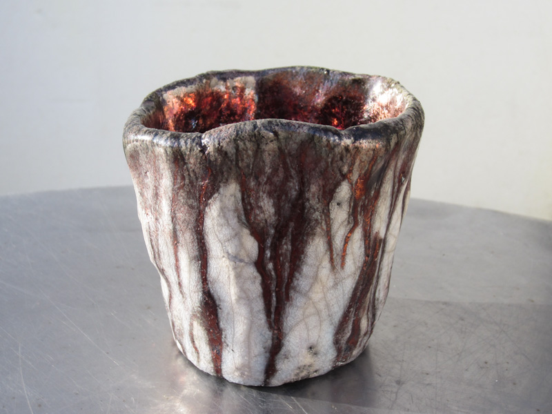 Maceta elaborada con técnica rakú por Cerámicas Fuísca, otro ceramista español de Vigo, Aleixo Seixo